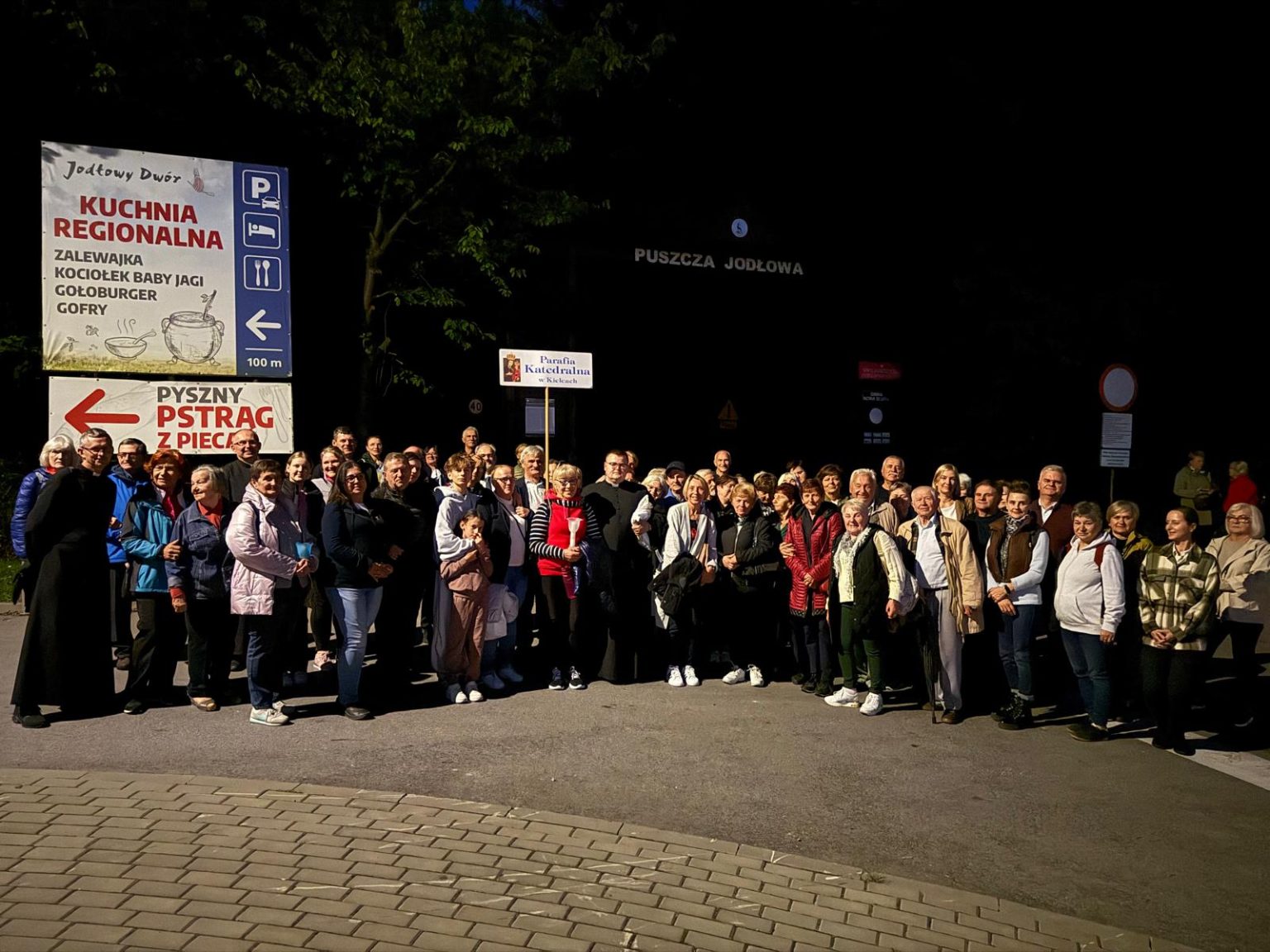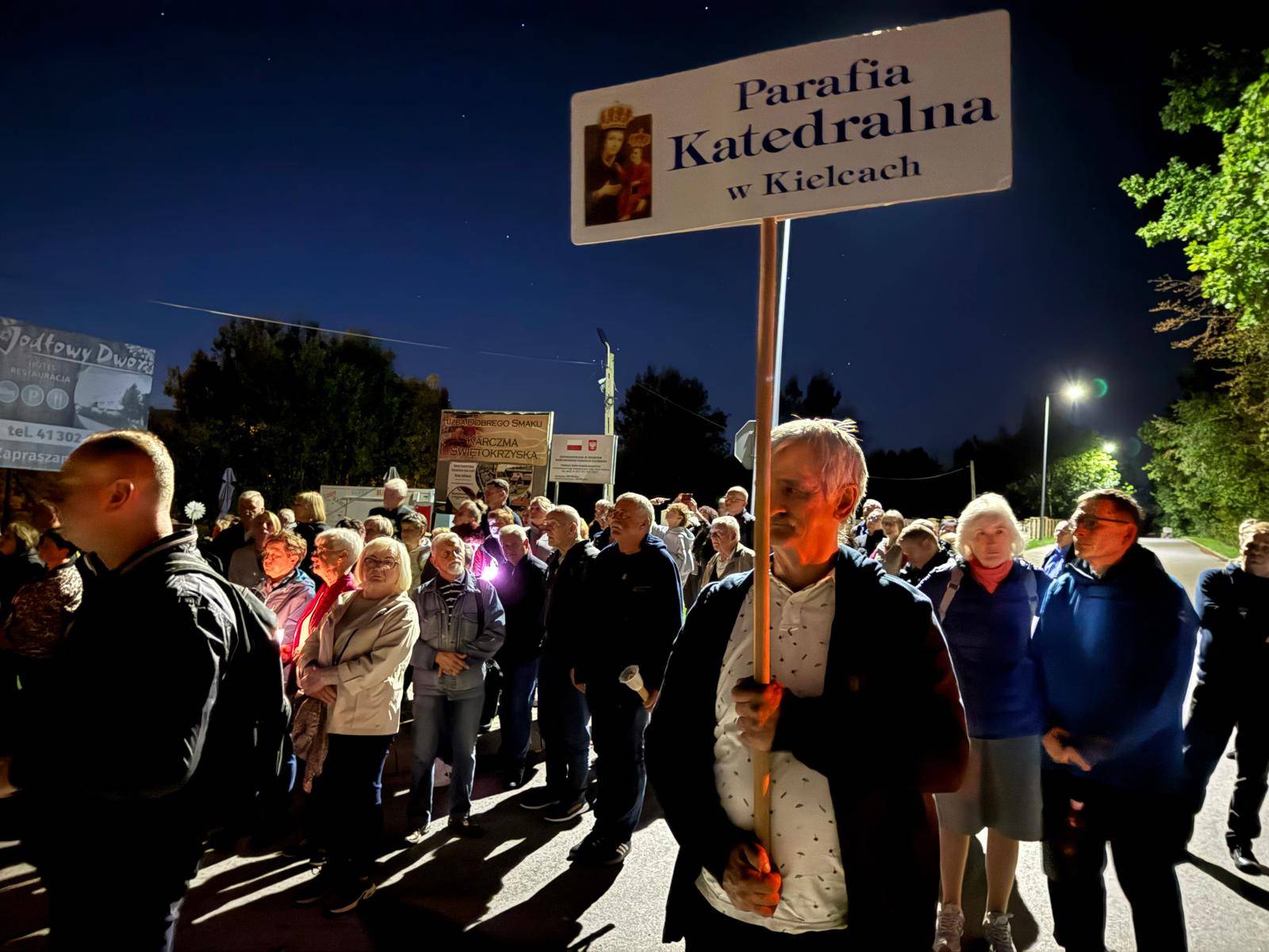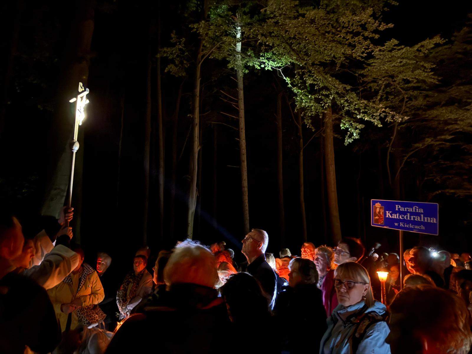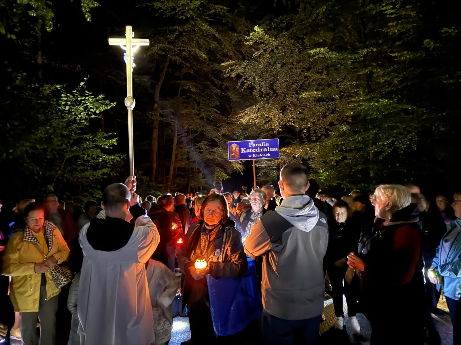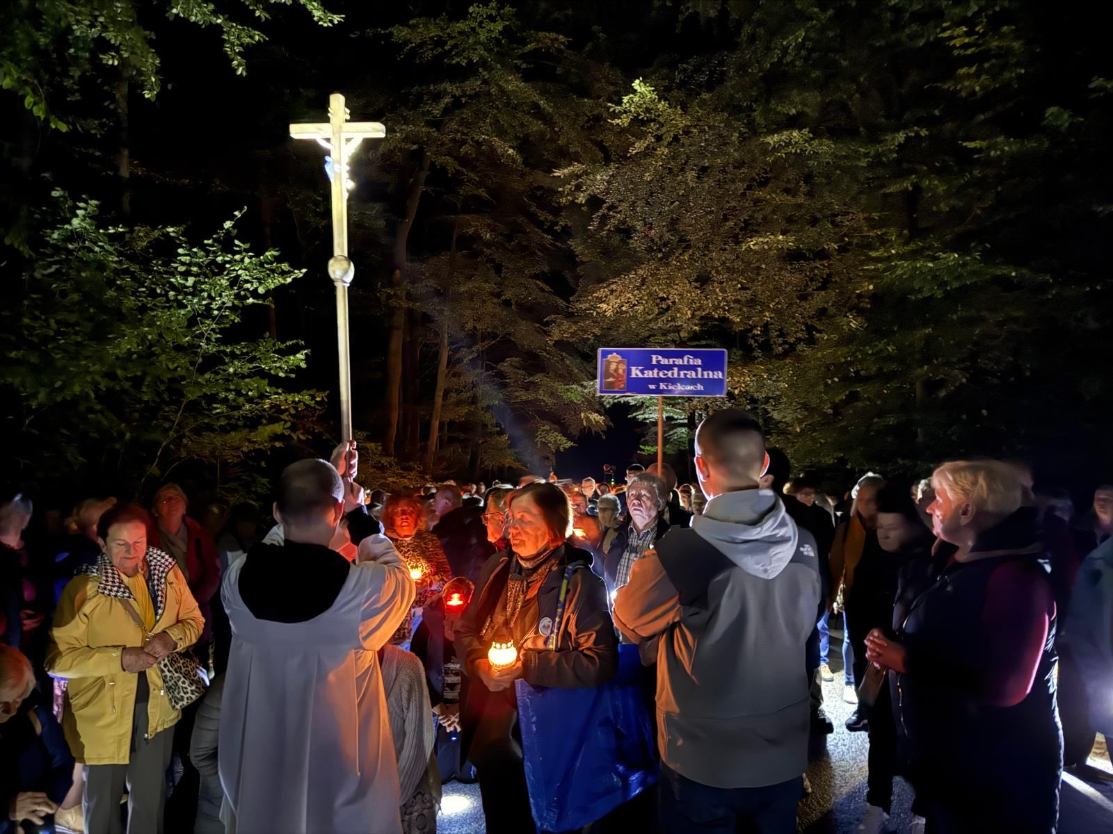 O godzinie 20:00, po przywitaniu przez Ojców Oblatów – gospodarzy sanktuarium, pielgrzymi wyruszyli Drogą Przewodników Świętokrzyskich, rozważając Drogę Krzyżową Jezusa Chrystusa. Wzruszające, bliskie codziennego życia przemyślenia, poprowadzili przedstawiciele Akcji Katolickiej diecezji sandomierskiej.
