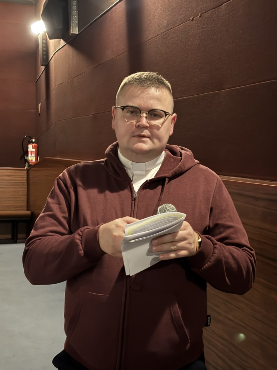 Spotkanie rozpoczął ks. Dawid Dzienniak, wygłaszając refleksyjne słowo wstępne o tym, co dzieje się z duszą po śmierci – na co czeka i czego potrzebuje, by wejść do domu Pana. Jego słowa, inspirowane doświadczeniami mistycznymi Fulli Horak, wprowadziły uczestników w atmosferę głębokiej zadumy i skłoniły do spojrzenia na tajemnicę życia wiecznego z nowej perspektywy.